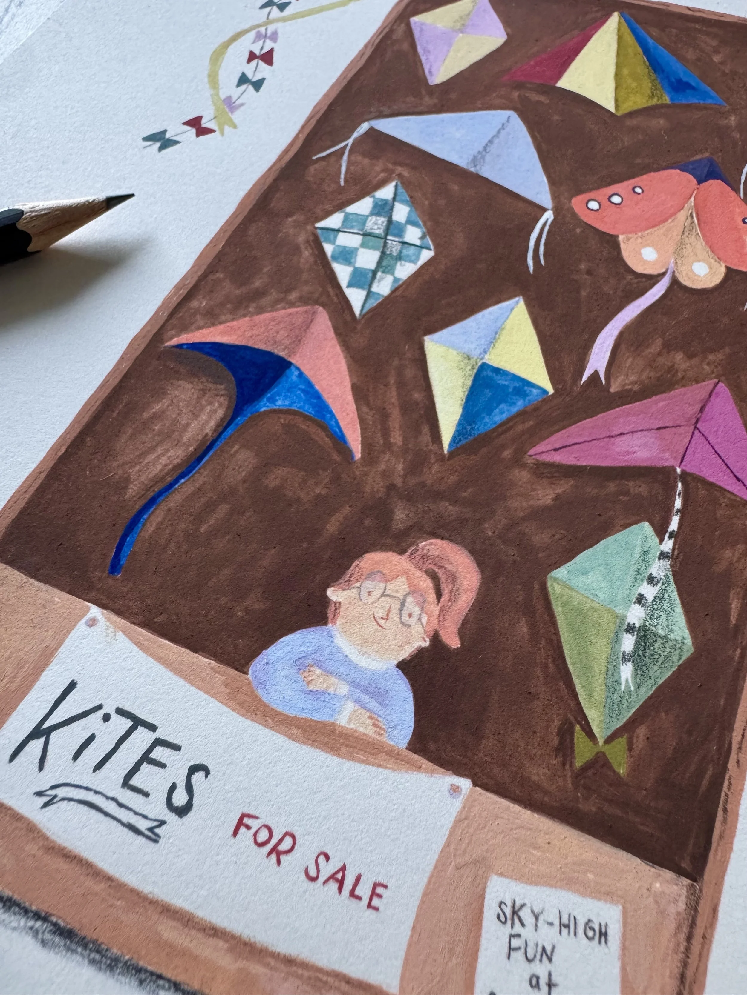 Acrylic gouache and pencil on paper